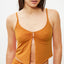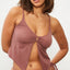 Tankini bikini top in soft brown faux suede swim fabric. Featuring an antique silver detail at the front and adjustable straps.