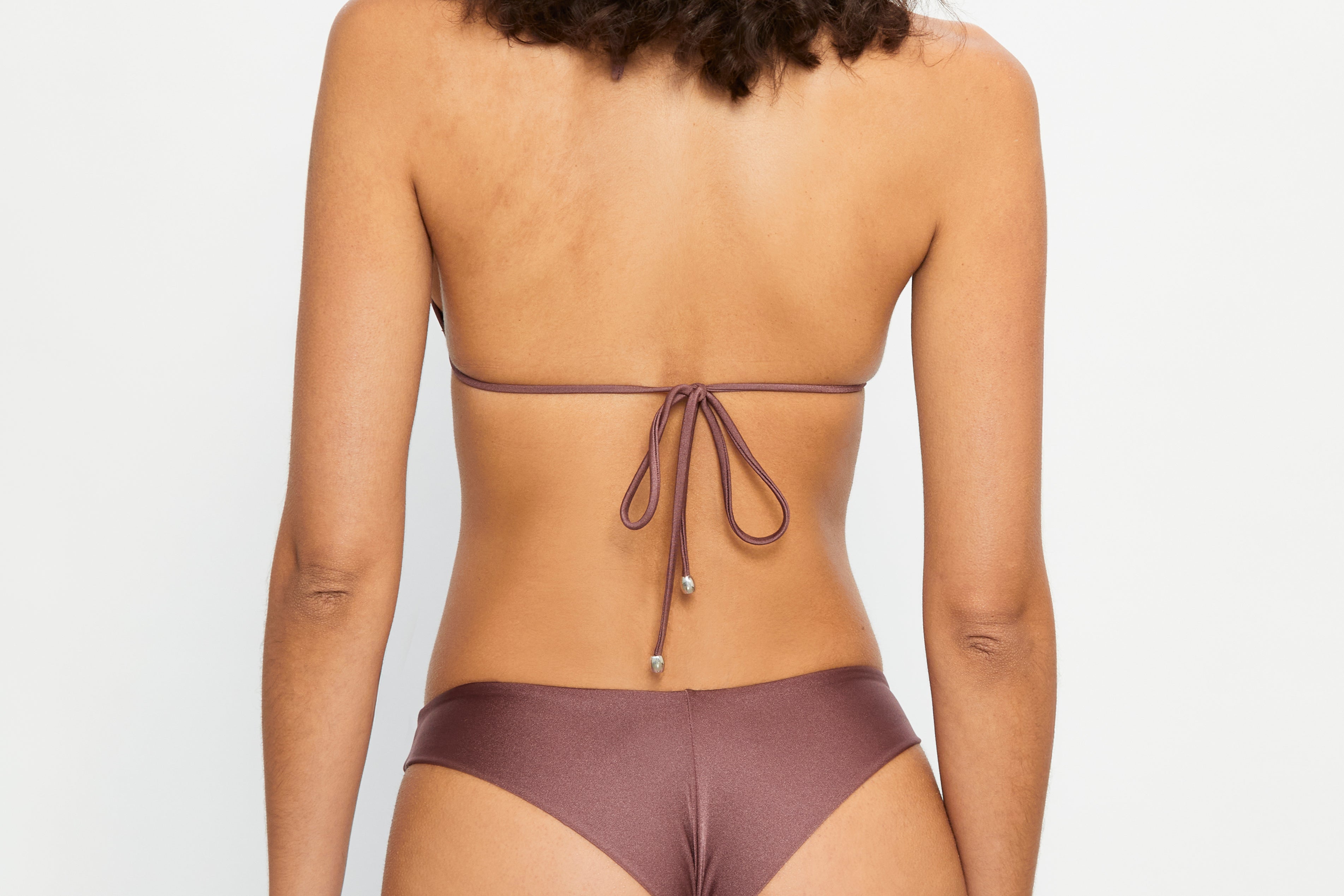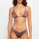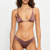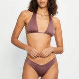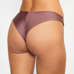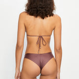 Brazilian bikini bottom in shiny mauve brown.