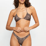 Thong bikini bottom in brown snake print.
