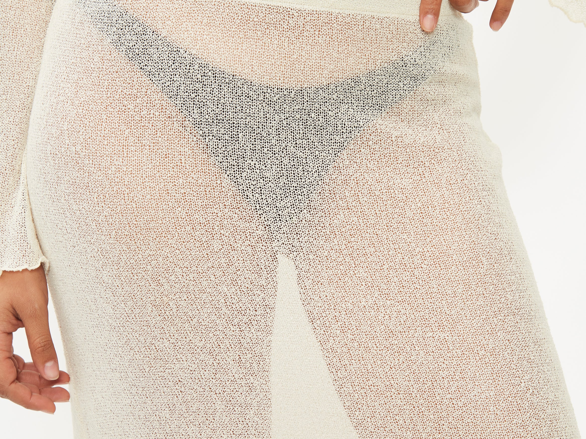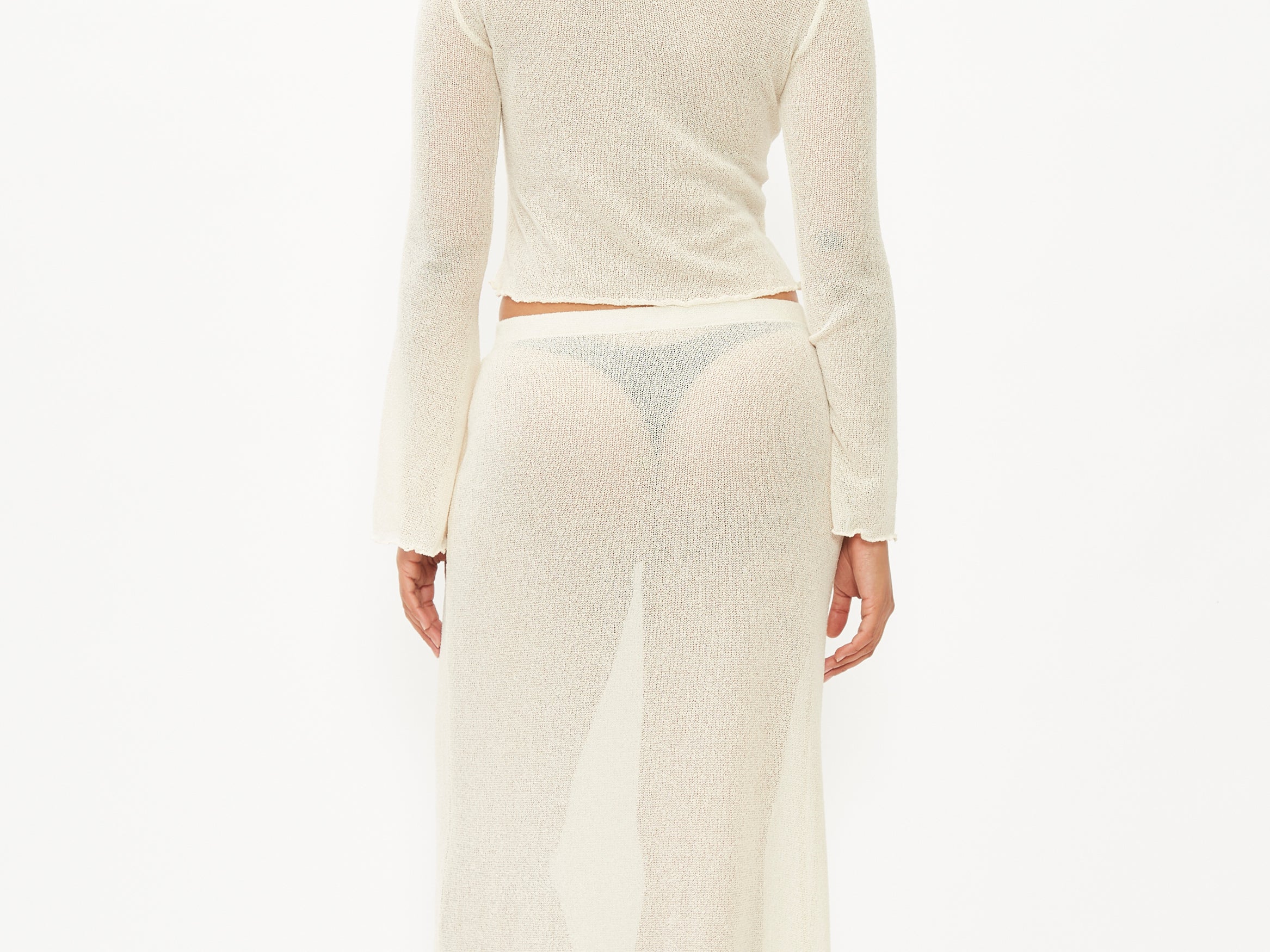 Straight skirt in a soft cream color, crafted from a stretchy ribbed cotton-elastane blend.