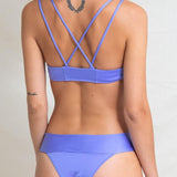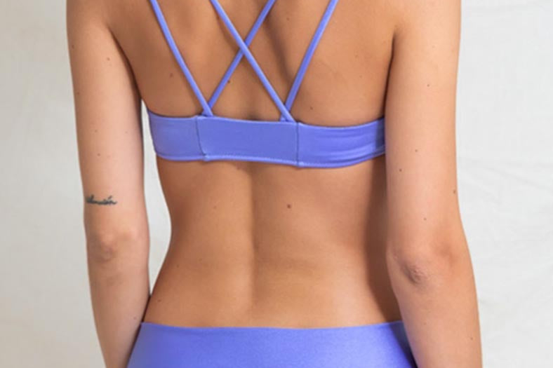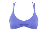 Gathered sport bikini top in mauve. Double strap, crossed and straight at the back.