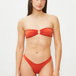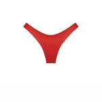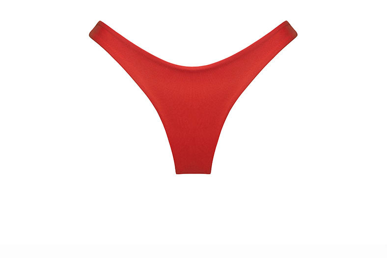 Braguita de bikini tipo tanga de cintura alta en ante sintético suave de color rojo.