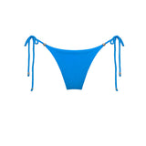 Tie-side bikini bottom in blue terry fabric with a towel-like texture, featuring silver bead details and designed with adjustable side ties.