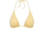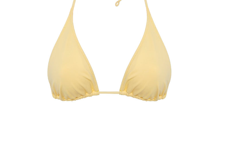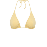 Triangle bikini top in soft yellow. Ties are adjustable at the neck or back. Foams can be added if desired.